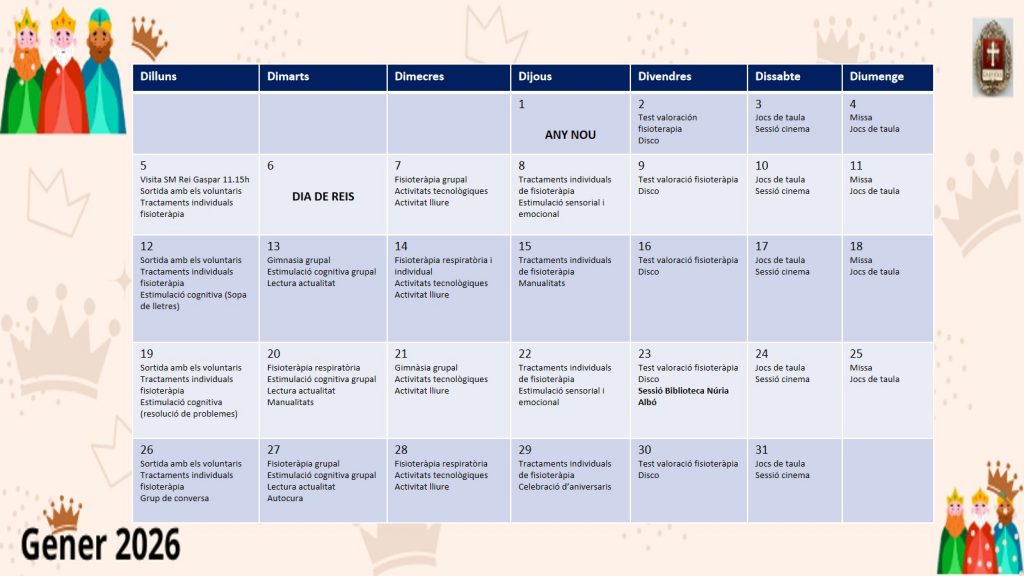 Activitats PREVgener 2026NEXTMONTUEWEDTHUFRISATSUN2930311234Activitat famílies56789101112131415161718192021222324252627282930311 Castellà Català